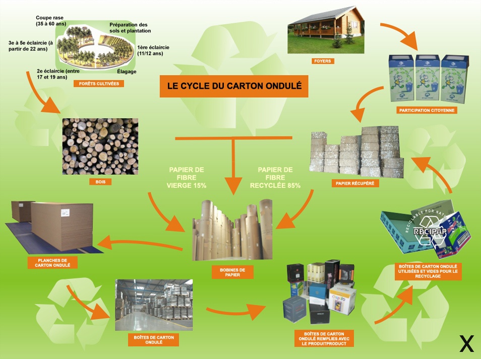 85% du papier utilisé dans nos emballages provient du papier recyclé et 15% provient de fibres vierges.